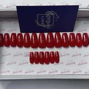 Each set contains 20 press-on nails in a box with an Emy’s Artistry Prep Kit for nail application, an instruction card, and a gift.