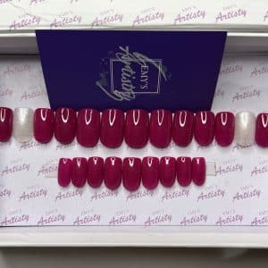 Each set contains 20 press-on nails in a box with an Emy’s Artistry Prep Kit for nail application, an instruction card, and a gift.
